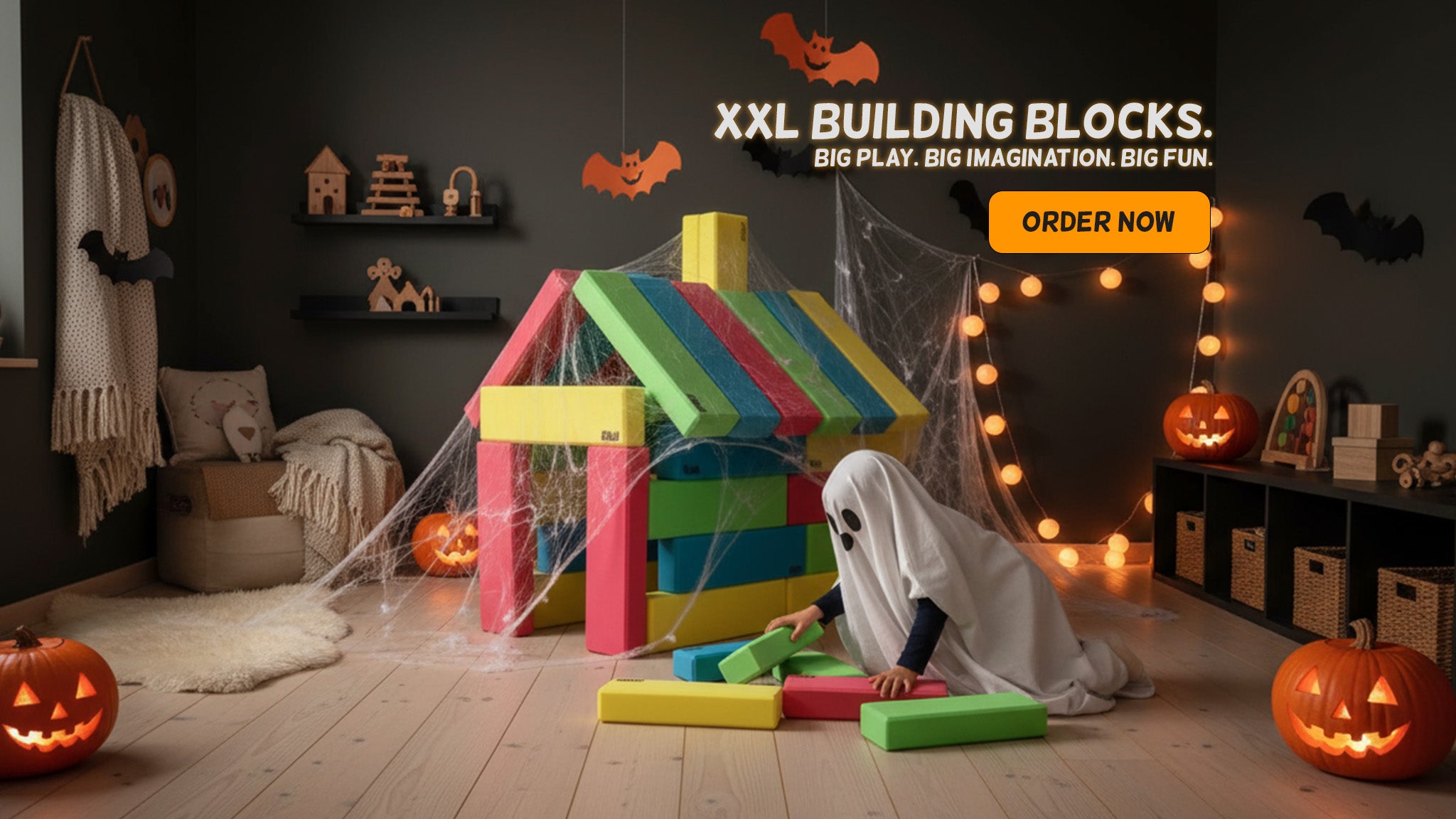 Giant foam building blocks for children ages 3 and up. For building, romping, and being creative— indoors and outdoors.